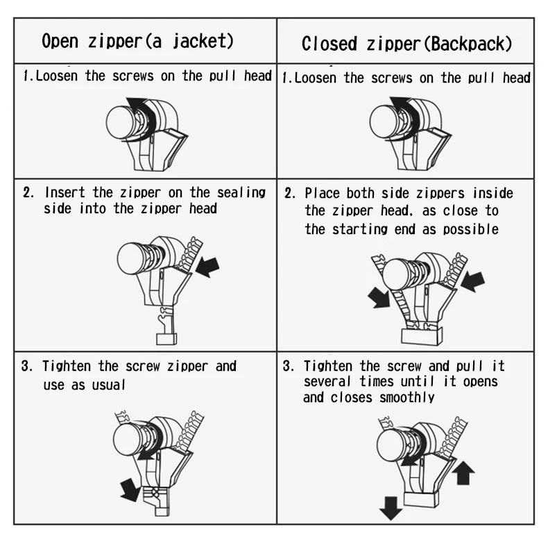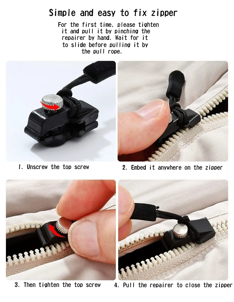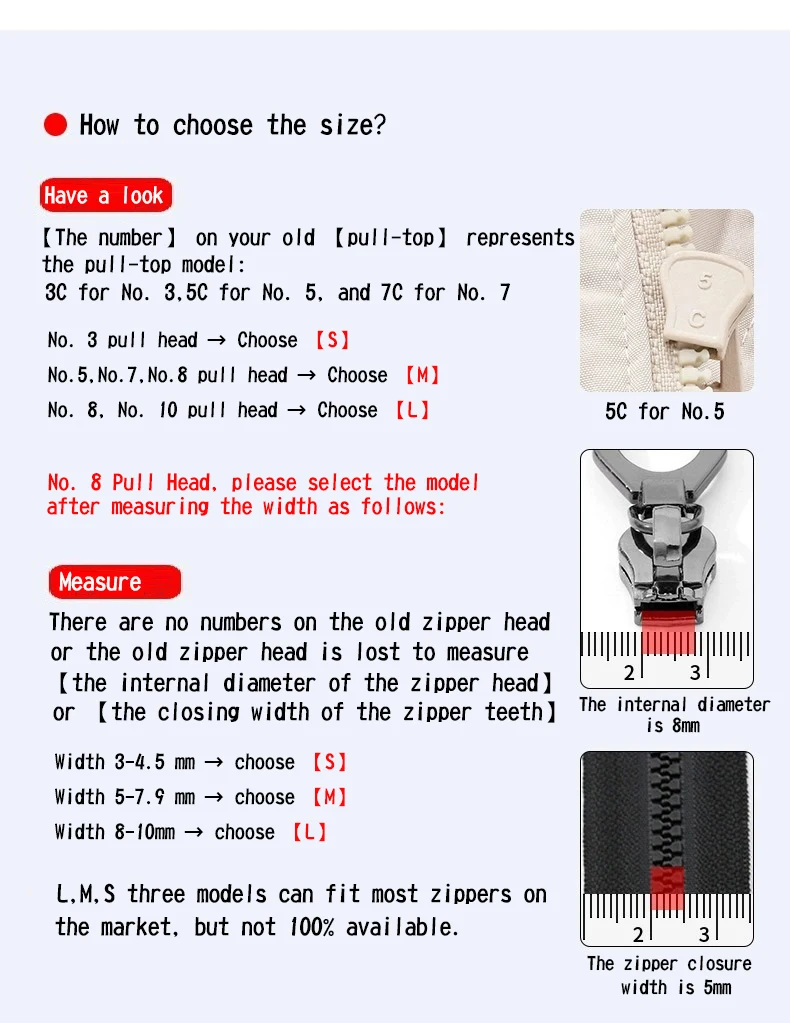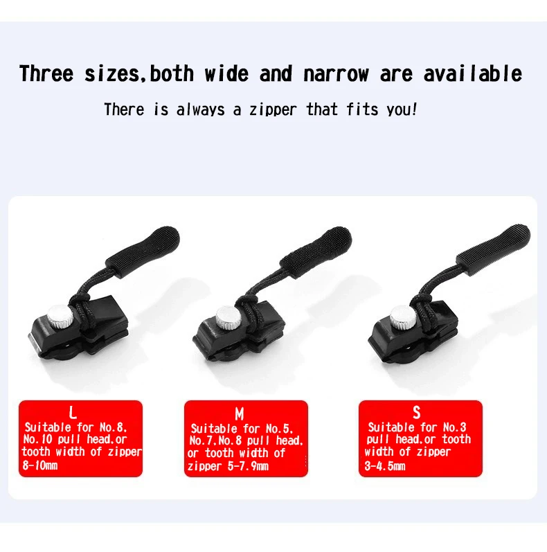 If you need zipper repairer that requires three sizes of S/M/L, please go to the link for set: 3/6/18/36pcs Zipper Repairer